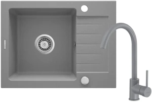 Deante Zorba Zlewozmywak granitowy z baterią 1-komorowy z ociekaczem, szary metalik, ZQZAS11A