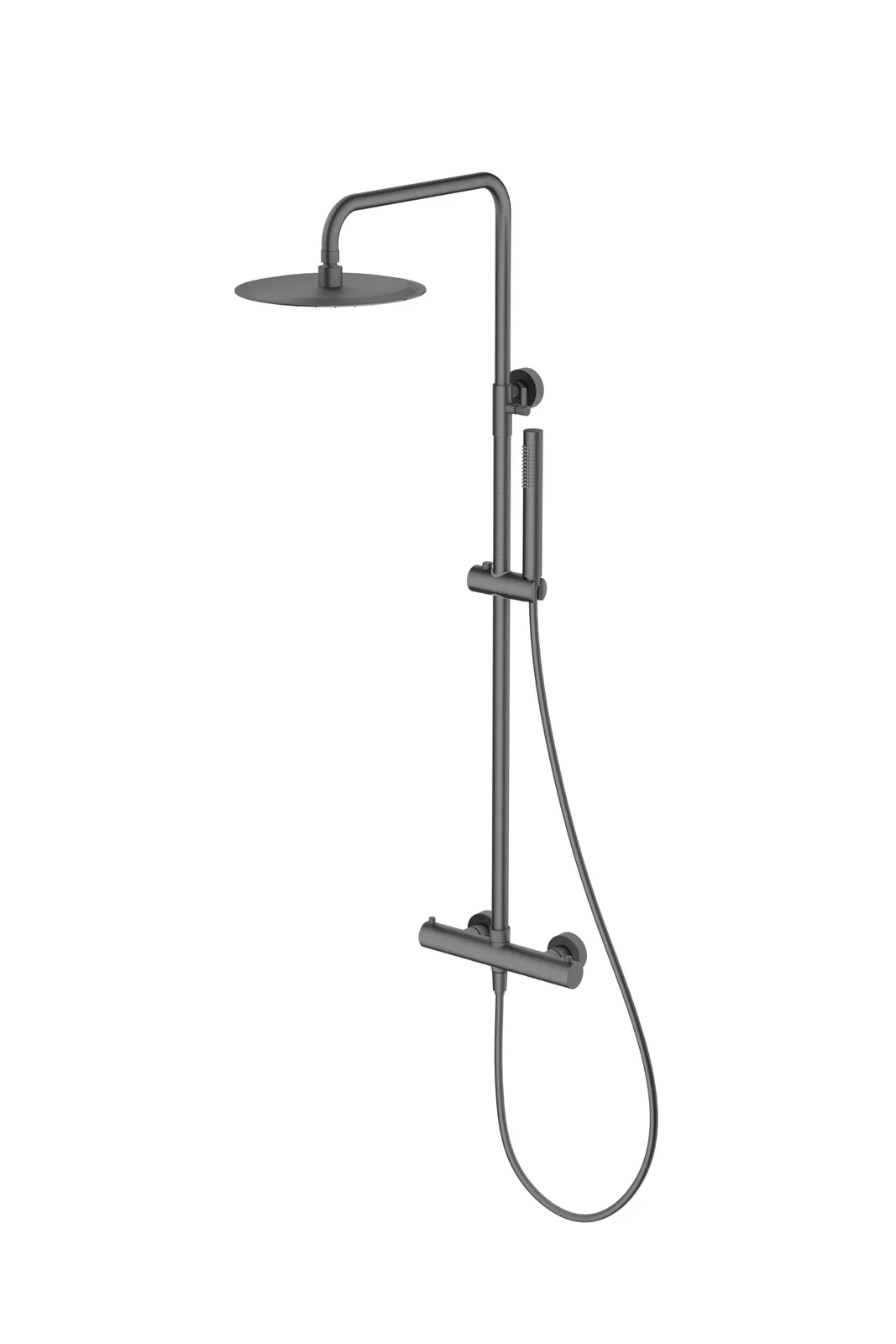 Emporia FLY kolumna natryskowa termostatyczna 2-funkcyjna z deszczownicą 250 mm gun metal – luksusowy zestaw prysznicowy