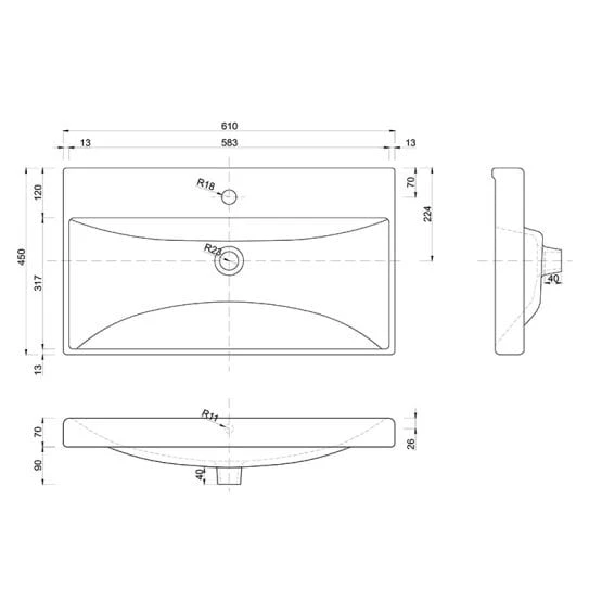 - Umywalka: Emporia Verso 60 cm, ceramika sanitarna, biały połysk, z otworem na baterię i przelewem