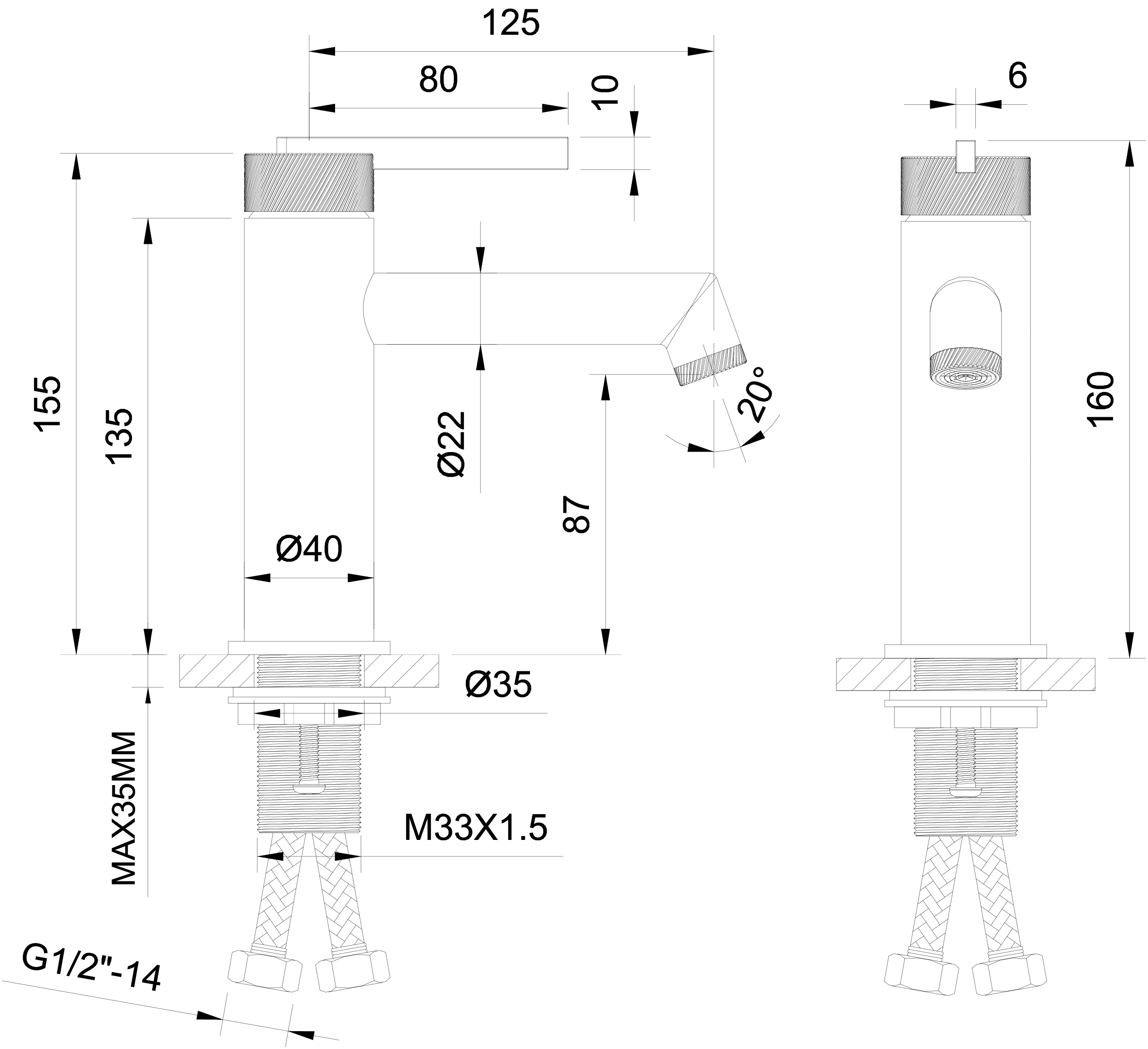 Emporia ORI bateria umywalkowa niska w gun metalowym wykończeniu – dane techniczne