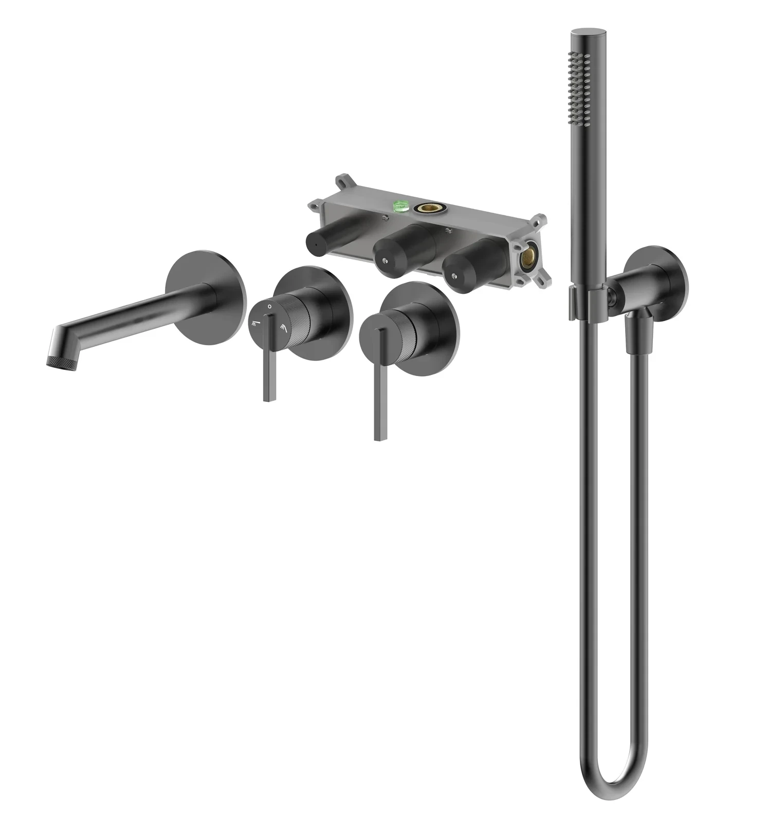 Bateria wannowa podtynkowa 4-otworowa w kolorze gun metal – styl, precyzja i wygoda