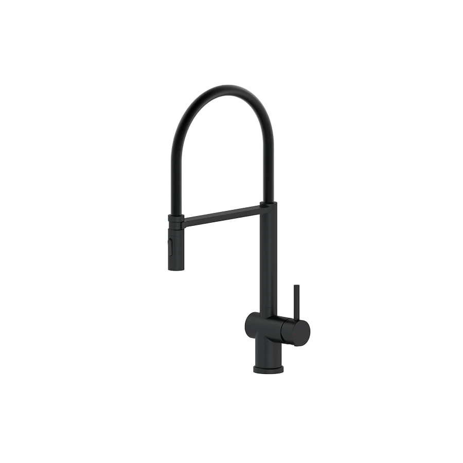 Czarny matowy kolor sprawia, że armatura staje się wyrazistym elementem aranżacji, doskonale wpisując się zarówno w kuchnie w stylu industrialnym, jak i w nowoczesne, minimalistyczne wnętrza. Stabilna konstrukcja i intuicyjna obsługa zwiększają komfort codziennego użytkowania.