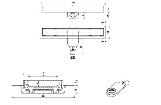 - Rodzaj: odpływ liniowy prysznicowy z rusztem odwracalnym