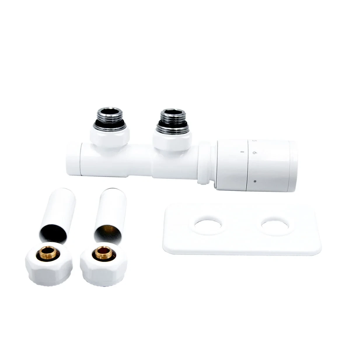 Emporia Zestaw termostatyczny MAX prawy biały – kompletny zestaw przyłączeniowy z maskownicą i złączką