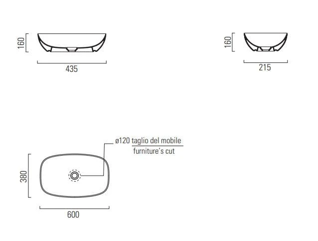 GSI Nubes umywalka nablatowa 60×38 cm – dane techniczne