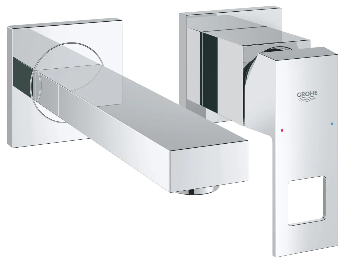 GROHE Eurocube – 2-otworowa bateria umywalkowa Rozmiar S chrom, montaż ścienny z AquaGuide i Long-LifeShine