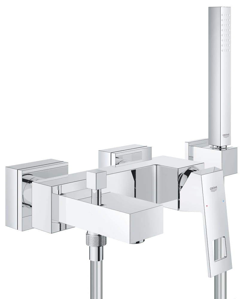 GROHE Eurocube – jednouchwytowa bateria wannowa z zestawem prysznicowym chrom – nowoczesna geometria i funkcjonalność