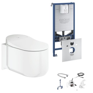 Grohe Sensia Arena + Rapid SLX zestaw: toaleta myjąca 39354SH1 + stelaż podtynkowy Rapid SLX do WC z kątownikami ściennymi 39598000 + zestaw do spłukiwania automatycznego 46944001 PGC-17.1