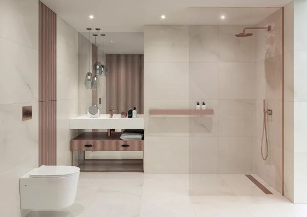 Elegantstone Bianco w formacie 59,8×59,8 cm doskonale komponuje się z drewnem, betonem i szkłem. Biały kolor dodaje wnętrzom świeżości i nowoczesnego charakteru, a półpolerowane wykończenie sprawia, że całość nabiera eleganckiego i ponadczasowego wyglądu. To propozycja, która idealnie sprawdzi się w salonach, łazienkach i reprezentacyjnych przestrzeniach.