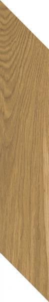 Wymiary: 9,8×59,8 cm; materiał: gres szkliwiony; wykończenie: mat; rektyfikacja: tak; mrozoodporność: tak; typ: płytka podłogowa/ścienna drewnopodobna w układzie chevron (lewa).
