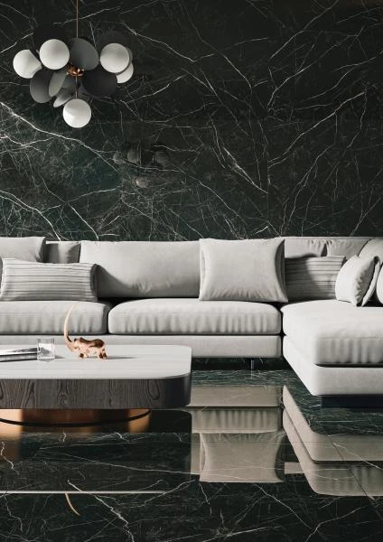 Gładka, polerowana tafla gresu odbija światło, nadając wnętrzom głębi i świetlistości. Płytka doskonale łączy się z elementami szkła, metalu i drewna, tworząc kompozycje o nowoczesnym i ekskluzywnym charakterze.