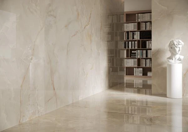 Format 119,8x119,8 cm zapewnia wrażenie dużych, jednolitych powierzchni. Polerowana tafla odbija światło, optycznie powiększając pomieszczenia i nadając im wyjątkowego charakteru. To doskonałe rozwiązanie do salonów, łazienek, przestronnych korytarzy czy luksusowych obiektów komercyjnych.