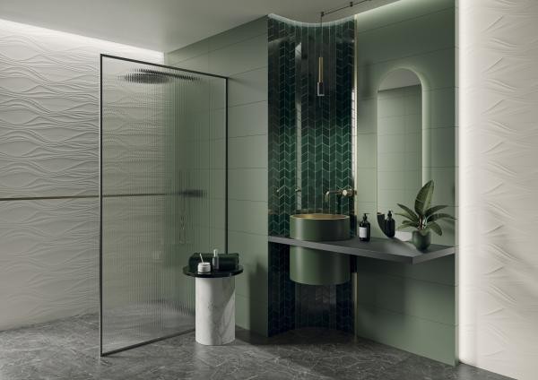 Zielono-granatowa płytka Paradyż Nightwish Navy Green Struktura Rekt. stanowi wyjątkowy element aranżacyjny, który doskonale komponuje się zarówno z jasnymi bazami kolorystycznymi, jak i z kontrastującymi akcentami drewna, metalu czy szkła. Jej strukturalne wykończenie nadaje ścianom trójwymiarowego efektu, wprowadzając do wnętrz głębię i wyrafinowany styl. To płytka, która pozwala tworzyć aranżacje pełne charakteru, idealne dla osób poszukujących nowoczesnych i niebanalnych rozwiązań.