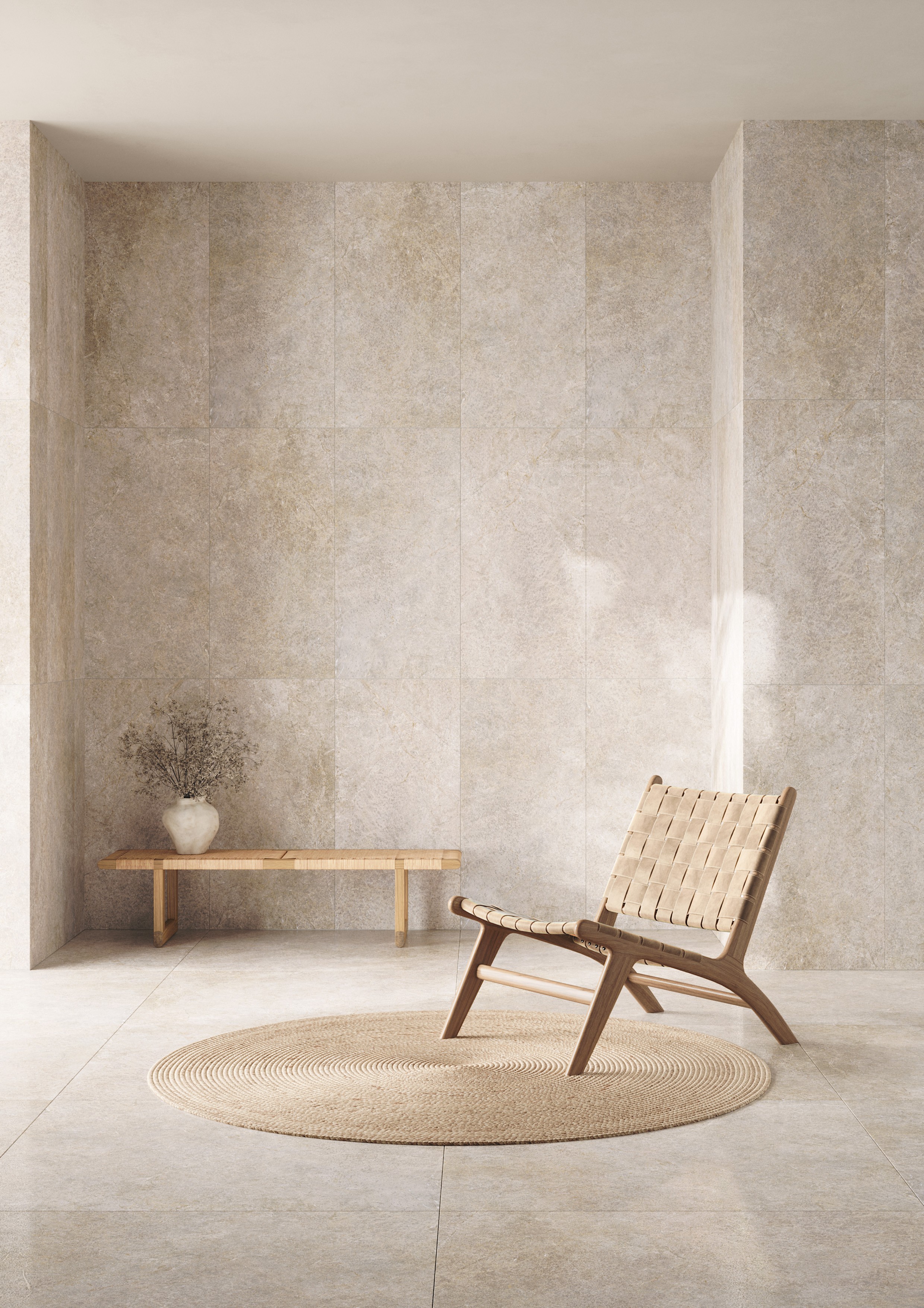 Duży format 119,8x119,8 cm sprawia, że płytki Paradyż Urban Champagne Beige idealnie sprawdzają się w przestronnych łazienkach, salonach kąpielowych czy strefach dziennych. Matowa, strukturalna powierzchnia pięknie odbija światło, a rektyfikowane krawędzie umożliwiają ułożenie płytek z wąską fugą, co dodatkowo podkreśla minimalistyczny charakter aranżacji.