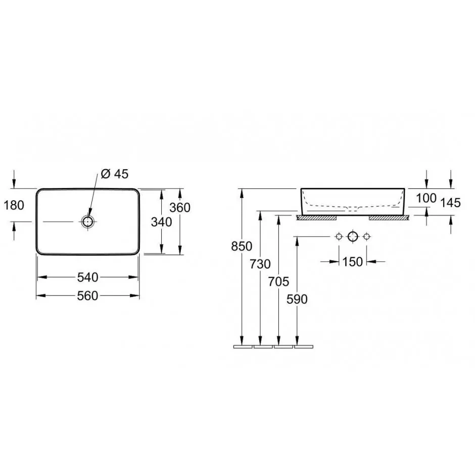 - Rodzaj: umywalka nablatowa, prostokątna.