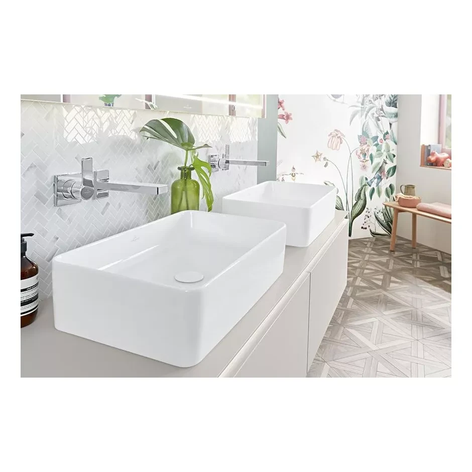 Umywalka nablatowa Villeroy & Boch Collaro o wymiarach 56 × 36 cm to eleganckie rozwiązanie do nowoczesnych łazienek, w których liczy się czysta linia i minimalistyczny design. Prostokątny kształt oraz smukłe proporcje sprawiają, że model doskonale prezentuje się na blacie, tworząc estetyczną i funkcjonalną strefę umywalkową.