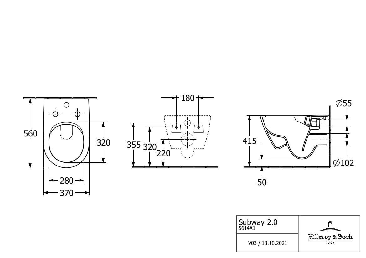 Villeroy & Boch Subway 2.0 miska WC wisząca 5614A101 – dane techniczne