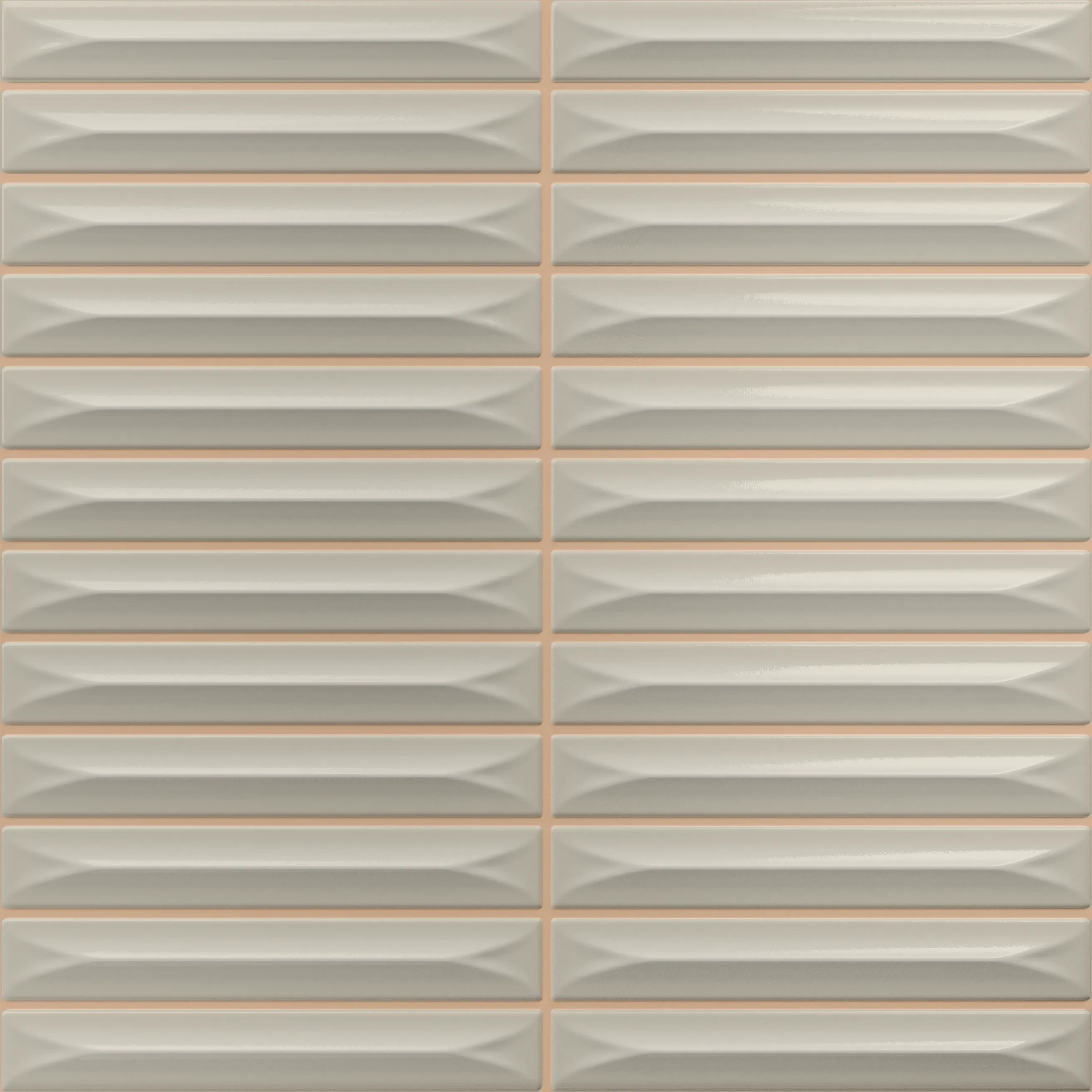 Kafelki ścienne Vilar Albaro Arrow Greige w formacie 20x20 cm to zgrabne połączenie estetyki drobnej mozaiki z wygodą montażu. Kwadratowy moduł zręcznie naśladuje układ filigranowych elementów o rozmiarze 1,5x10 cm. Subtelny, szarobeżowy odcień zestawiony ze lśniącym wykończeniem kreuje we wnętrzu ciepłą, a zarazem wyrafinowaną aurę. To fantastyczna opcja dla osób pragnących urozmaicić ściany w kuchni bądź łazience bez konieczności kłopotliwego układania setek mikroskopijnych cegiełek.