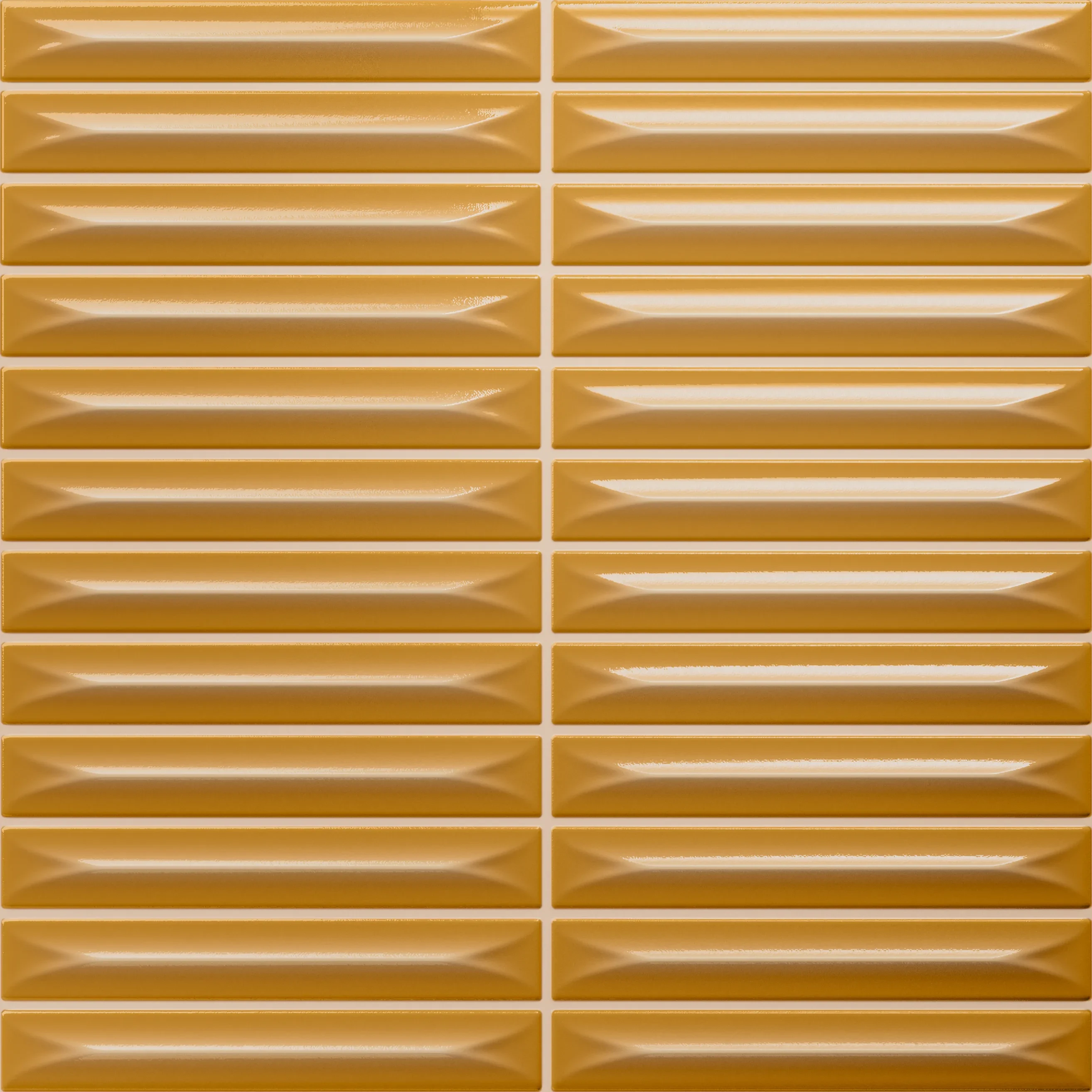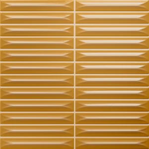 Kolekcja Arrow sygnowana przez markę Vilar Albaro to wspaniały sposób na architektoniczne ożywienie każdej przestrzeni. Wariant Honey kusi ciepłym, miodowo-musztardowym kolorytem, który natychmiastowo wnosi do pomieszczenia optymizm i wizualne ocieplenie. Kwadratowa baza o boku 20 cm charakteryzuje się precyzyjnymi wytłoczeniami, które dzielą taflę na mniejsze moduły o rozmiarach 1,5x10 cm. Dzięki tej przemyślanej architekturze zyskujemy na ścianie zachwycający deseń przypominający rzemieślniczą układankę, omijając etap mozolnego spoinowania pojedynczych elementów. Ten żółty akcent rewelacyjnie współgra z surowością betonu, klasyczną bielą czy ciemnym, naturalnym drewnem.