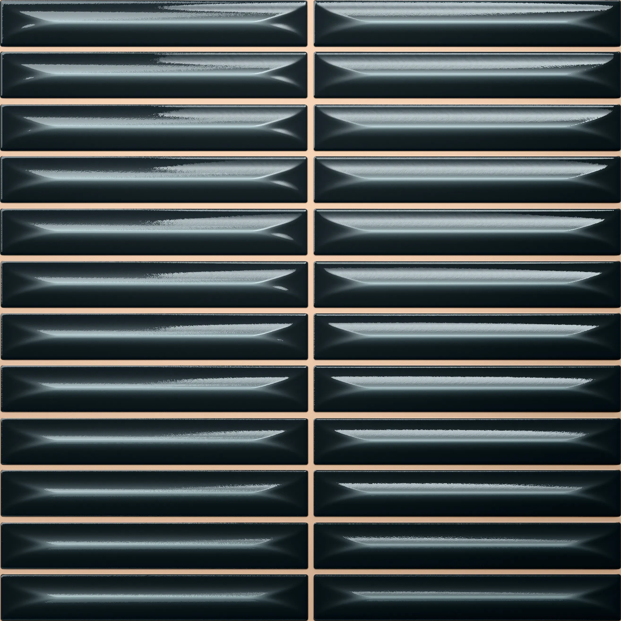 Kolekcja Arrow od Vilar Albaro w wariancie Midnight kusi niesamowicie głębokim, granatowym odcieniem, przywodzącym na myśl nocne niebo. Kwadratowy profil o wielkości 20x20 cm został fabrycznie ukształtowany w taki sposób, aby odzwierciedlać misterne ułożenie wąskich, prostokątnych detali o proporcjach 1,5x10 cm. Dzięki tej architekturze z łatwością osiągniesz rezultat luksusowej plecionki, unikając jednocześnie skomplikowanego i długotrwałego spoinowania pojedynczych pasm. Taka ciemnoniebieska baza wspaniale uwydatnia urok jasnej armatury oraz złotych czy miedzianych dodatków.