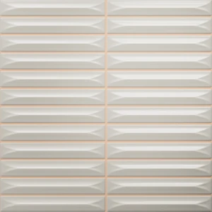 Linia Arrow od marki Vilar Albaro to doskonała propozycja dla osób poszukujących nieszablonowych tekstur bez konieczności skomplikowanego montażu. Wariant Silver prezentuje się jako kwadratowy moduł o boku 20 cm, którego lico precyzyjnie dzieli się na mniejsze, prostokątne segmenty o wymiarach 1,5x10 cm. Dzięki temu zabiegowi uzyskujemy efekt misternej, gęstej plecionki w ułamku czasu potrzebnego na ułożenie tradycyjnych, pojedynczych listewek. Chłodny, srebrny kolor znakomicie wpisuje się w loftowe oraz minimalistyczne aranżacje, stanowiąc wyrafinowane tło dla czarnej lub chromowanej armatury.