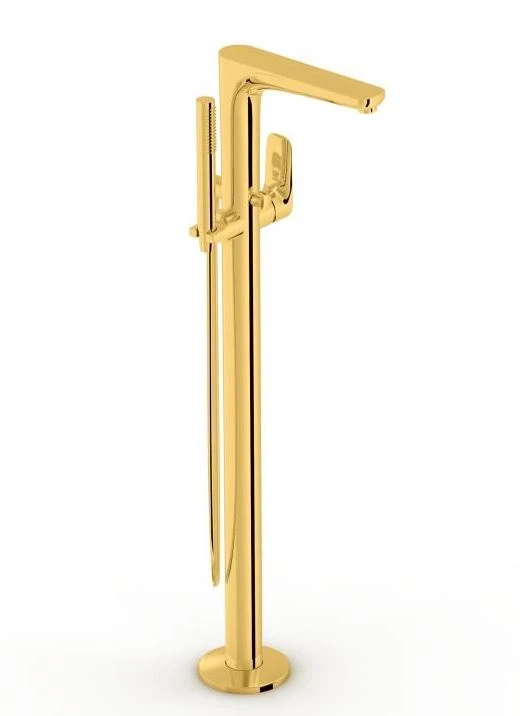 Złota bateria wannowa stojąca Vitra z serii X-Line (A4128823EXP) to wysoka na 91,4 cm armatura dedykowana do kompletacji z wannami niezabudowanymi. Model ten posiada stałą wylewkę o zasięgu 22,3 cm oraz zapewnia wygodną regulację jednouchwytową. Aby zagwarantować pełną gotowość do montażu podłogowego, zestaw zawiera niezbędny element instalacyjny (bazę podłogową).